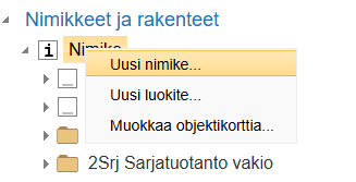 Perusta nimike Flow'ssa "Nimike ja rakenteet - Nimike - Uusi nimike"