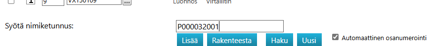 Tunnuksen kohdalla voidaan käyttää esim. projektin numero + numerosarja-yhdistelmää. Tämä kertoo heti, että kyseessä on vain tähän projektiin perustettu nimike.