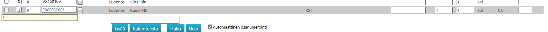 Lisää nimikkeen kappalemäärä rakenteeseen.