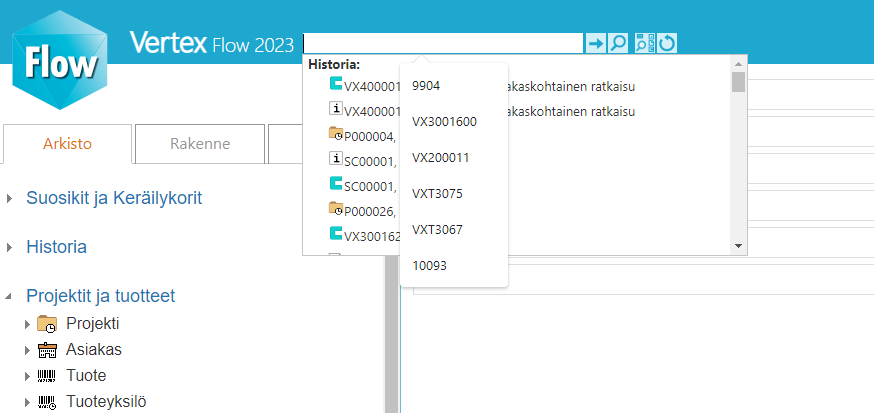 Chrome-selaimessa on ominaisuus, joka ehdottaa tekstikenttiin sisältöä aikaisempien käyttötapausten mukaan. Myös Vertex Flow -käyttöliittymässä on hakukenttiä (teksti), joihin on upotettu hakutoiminnallisuus & automaattiehdotukset. Pikahaun tekstikentässä nämä kaksi toiminnalisuutta saattavat olla molemmat aktiivisia ja Chrome-selaimen ehdotukset tulevat Flow'n omien ehdotusten päälle.