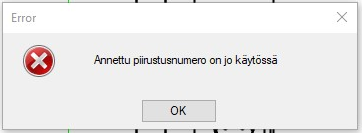 Piirustuksen / mallin palautus Flow'hun ei onnistu. Virheilmoitus: Annettu piirustusnumero on jo käytössä / Annettu mallinumero on jo käytössä.