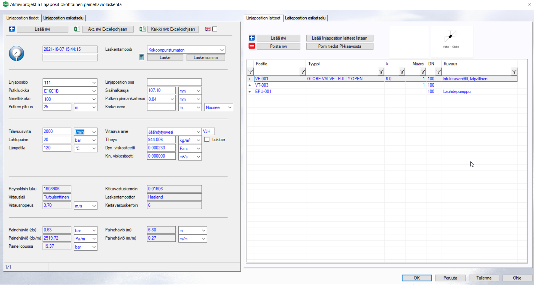 Painehäviölaskenta myös Flow'sta katseltavana olevalle PI-kaaviolle tai mallille