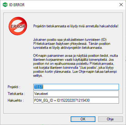 Suoraviivaistimme virheilmoituksen ID ERROR näytön. Näytössä kerrotaan nyt selkeästi, minkä vuoksi virheilmoitus tulee ja mitä käyttäjältä vaaditaan tilanteen korjaamiseksi. Päivitimme myös Ohje-napin takaa aukeavan ohjeen, jossa kerrotaan yksityiskohtaisemmin vaadittavat korjaustoimenpiteet. (Vertex ID: PLANT-4409)