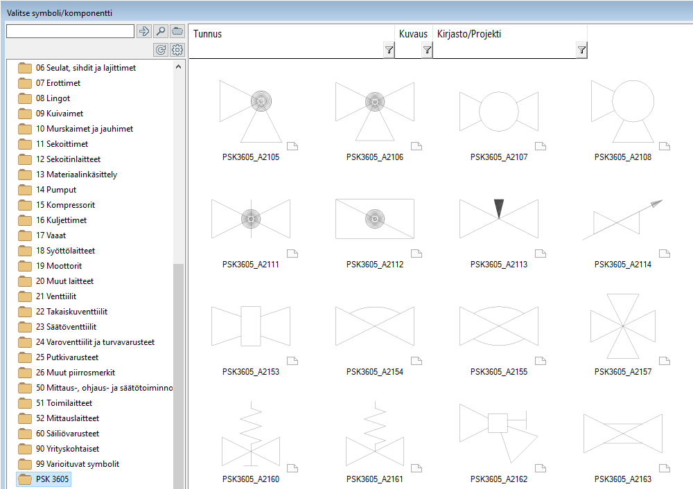 Ohjelmassa on erikoistyökalut projektin kaaviotietojen listauksia varten. Kerää projektin kaikki kaaviotiedot tai suodata listalle haluamasi. Osaluettelo voidaan tulostaa suoraan joko suomeksi tai englanniksi.