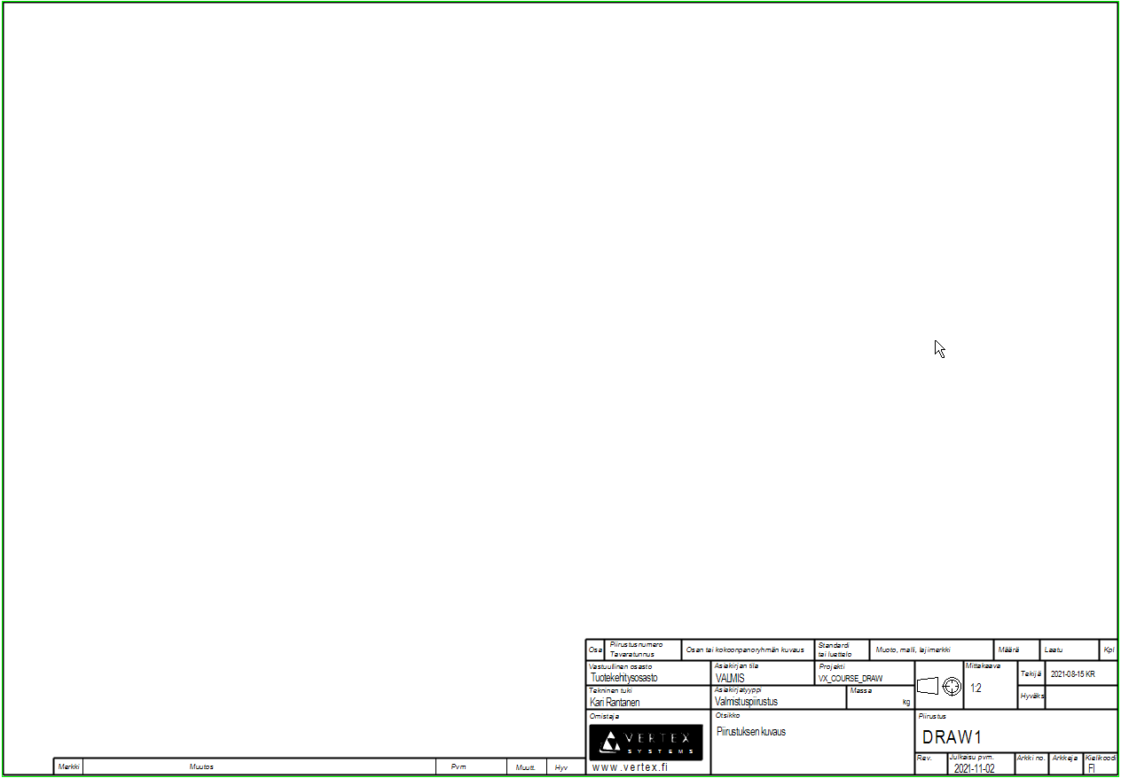 Piirustuslomakkeet muokataan usein asiakaskohtaisiksi, joten niiden ulkonäkö voi poiketa Vertex Systems Oy:n esimerkkilomakkeista.