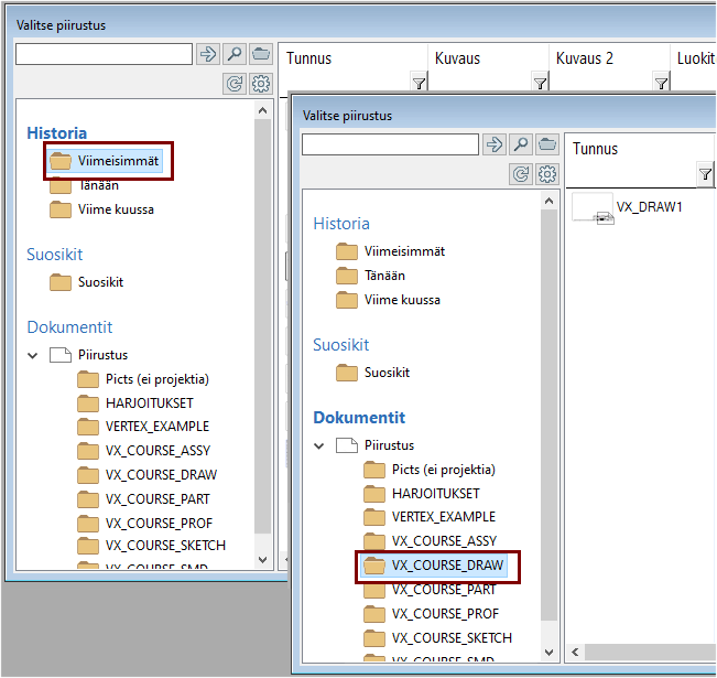 Voit myös valita projektin Dokumentit > Piirustus-kansion alta.