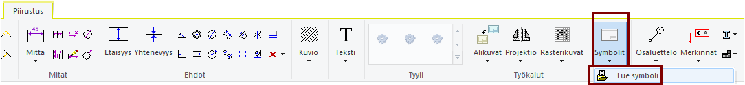 Voit käyttää myös tilannekohtaista valikko (hiiren oikeanpuolen painike) symbolin lisäämiseen.