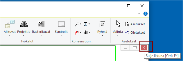 Paina punaista rastia (Sulje ikkuna) piirustusikkunan vasemmasta yläkulmasta tai käytä näppäinpikatoimintoa: