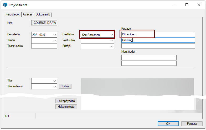 Voit koska tahansa täydentää ja muokata piirustuksen arkistotietoja toiminnolla: