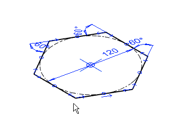 - Mallinnus aloitetaan luonnostelemalla pohjan kuusi-kulmainen muoto sopivaan tasoon (tässä Vaaka (XY)-tasoon)