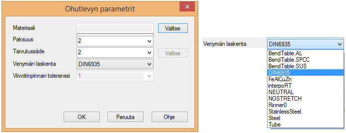 - Anna ohutlevyn paksuus ja kaava, jos haluat ao. mitan mittataulukolla varioituvaksi.