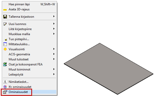 - Valitse tilannekohtaisesta valikosta toiminto Ominaisuudet.