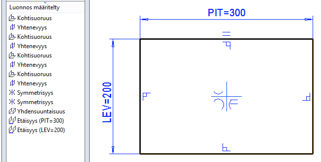 - Luonnostele vaakasuuntainen jana osoittamalla piste ja antamalla janalle pituudeksi 300 (ja kaavaksi PIT)