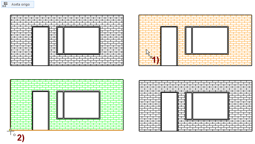 Toiminto: Aseta origo.