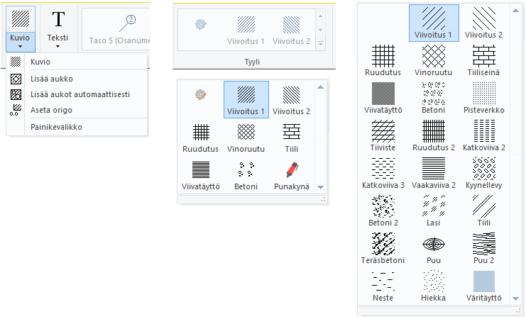 Kohdasta Kuvio saat esille myös sellaisia kuvioita, joita et pääse valitsemaan, kun lisäät kuvioita.