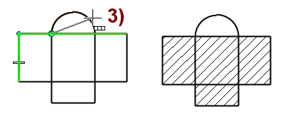 Osoita kuvioon tulevien aukkojen reunaviivat. Kuvassa 2), 3) ja 4).