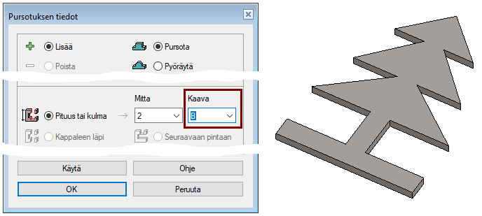 Poistu luonnoksesta OK:lla ja tee lisäävä pursotus.