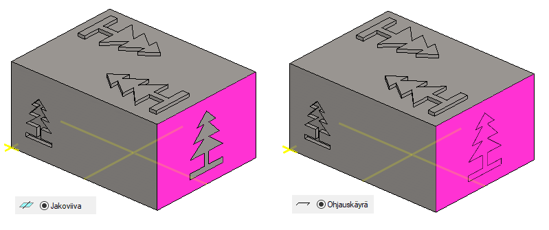 Toimenpide Jakoviiva jakaa pinnan kahteen pintaan. Kunhan viiva joko rajaa pinnan kahteen alueeseen tai katkaisee pinnan kahtia.
