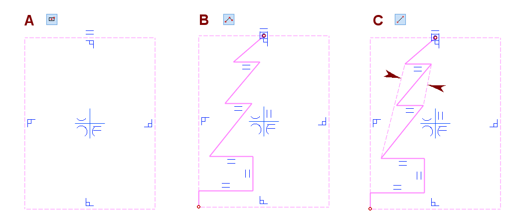 Poista reunaviiva valittujen viivojen joukosta. Oranssi viiva, kuvassa E.