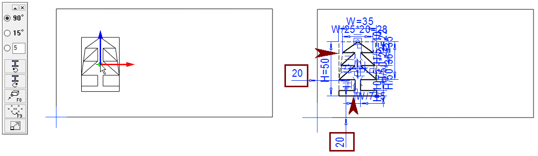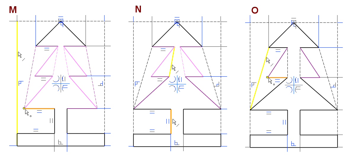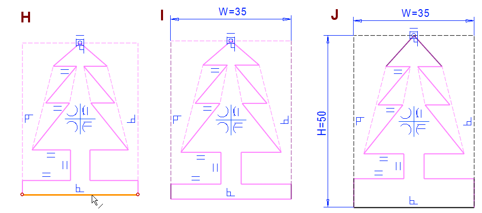 Tämän jälkeen viivat ovat sinisiä ja mittaehdot ovat punaisia, eli ne ovat ylimääriteltyjä, eivätkä enää varioidu.