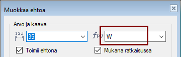 Muokkaa jokaista luonnoksen mittaa, jossa kaava ja poista Kaava-kentän sisältö.