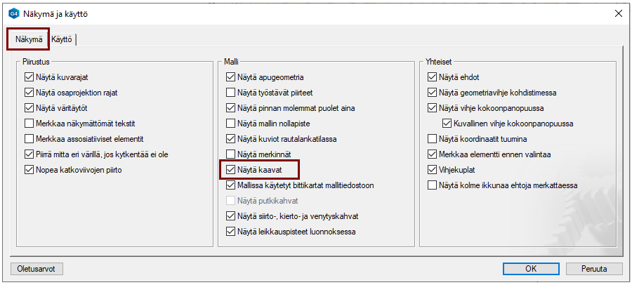 Voit vaikuttaa kaavojen näkymiseen luonnostelussa asetuksella: