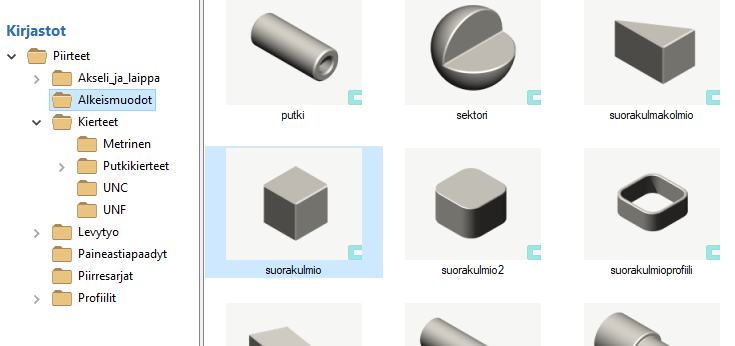 Toisin kuin malleilla ja piirustuksilla, luonnoksia voidaan raahata kirjastosta toiseen myös Windows'in keinoin (Tulokset näkyvät, kun Vertex käynnistetään uudelleen tai selain päivitetään).