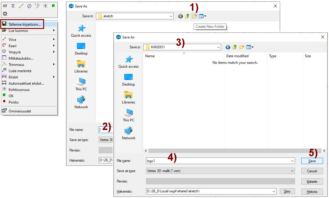 Dialogin Create New Folder, kuvassa 1).