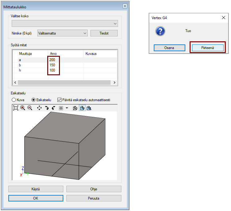 Valitse (esim. aitaamalla) luonnoksen geometria.