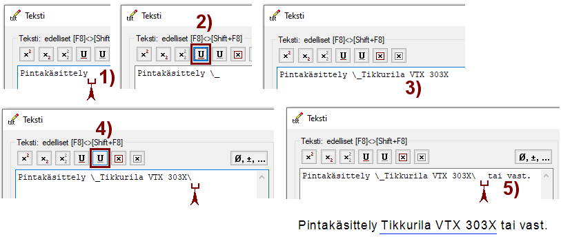 Kirjoita teksti: Pintakäsittely . (Huomaa välilyönti tekstin lopussa)