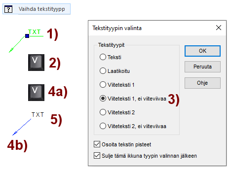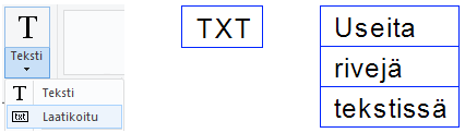 Toiminto: Teksti tai laatikoitu teksti tai jokin viiteviivallinen teksti.