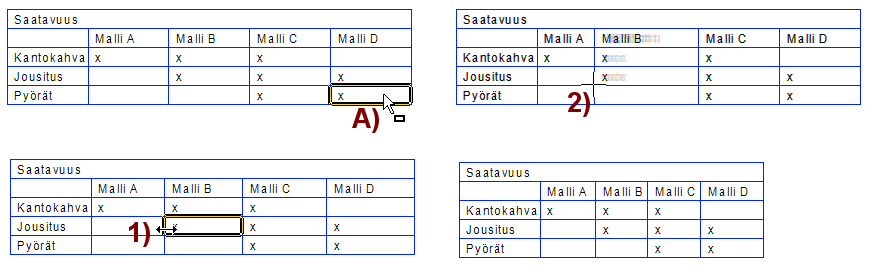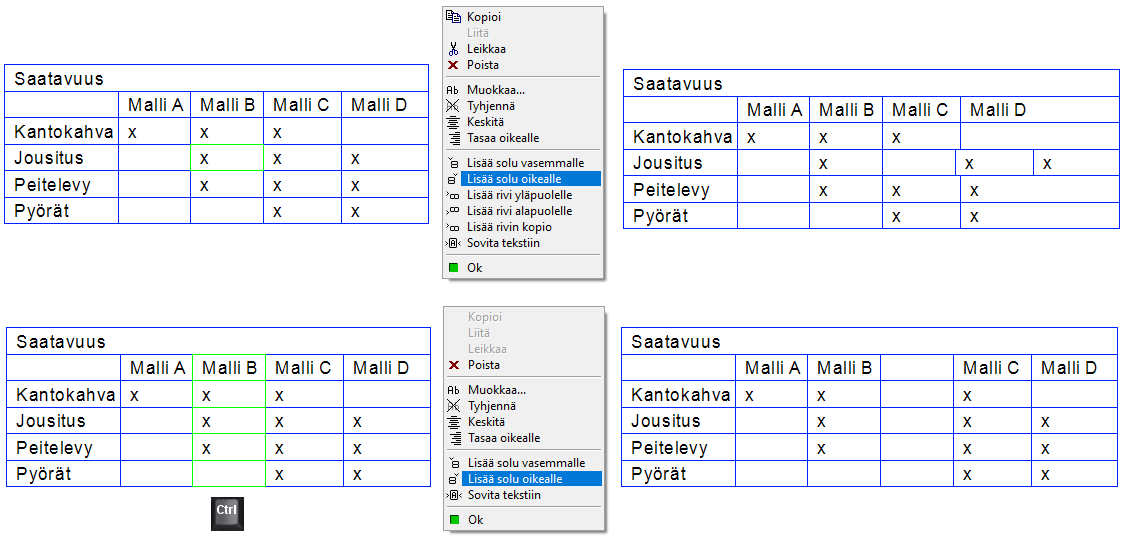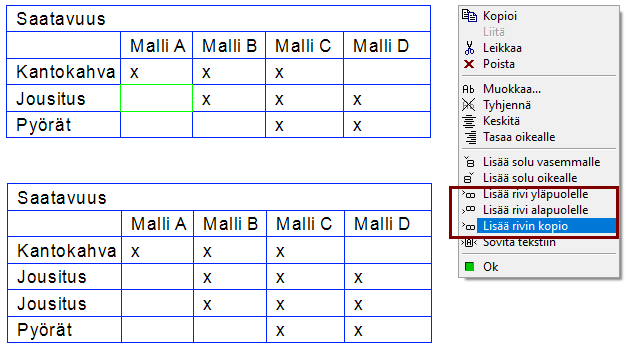 Lisää taulukon riville soluja