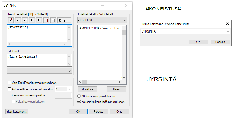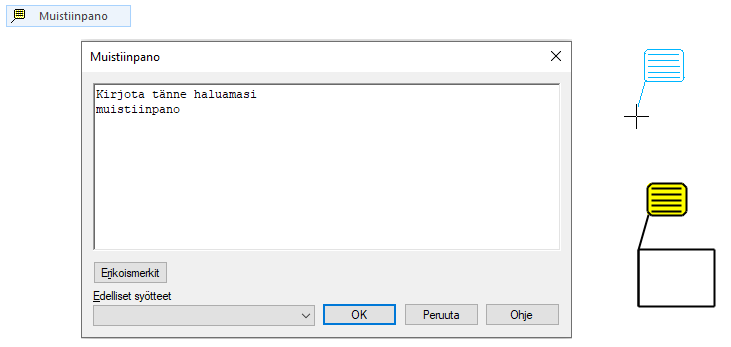 Voit valita siellä näkyvän tekstin ja lisätä se piirustukseen.