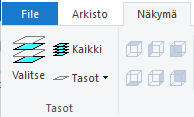 Työkalunauhan Näkymä-välilehden vasemmassa reunassa on tasojen käsittelyyn liittyvät toiminnot, joiden avulla voit sytyttää ja sammuttaa tasoja.