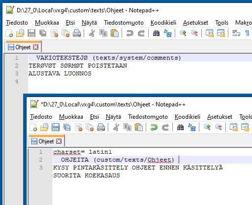 Vertex tarkastaa käynnistysvaiheessa että tiedosto ../vxg4/system/texts/textfiles löytyy ja tutkii myös, että löytyykö saman niminen custom-kansion tiedosto ../vxg4/custom/texts/textfiles.
