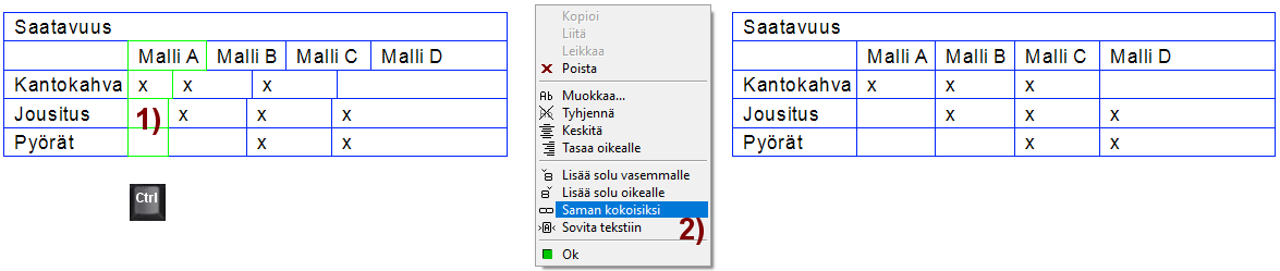 Tilannekohtainen toiminto: Saman kokoisiksi. Kuva 2).