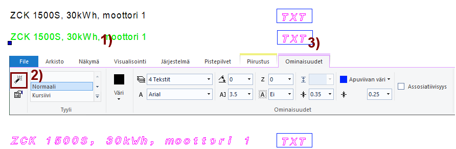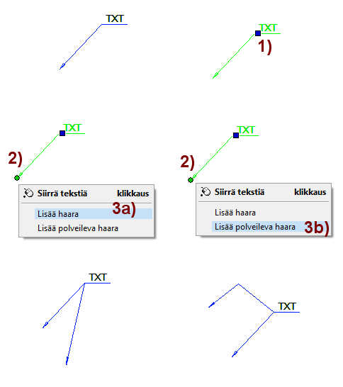 Kaksoisklikkaus lisää piirustukseen, jolloin riville tarvitaan kaksoisnapsautus, jotta siirrytään lisäämään tekstiä.