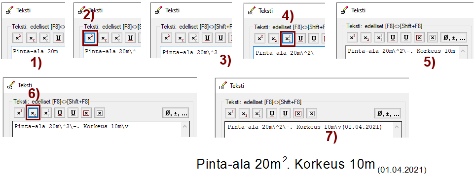 Ohjelma lisää merkit dialogin alaosassa näkyvälle riville.
