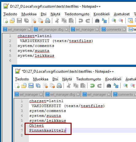 Jos muokkaat system/texts/system-kansiossa olevia tiedostoja (comments, leikkaus tai suunta), niin nuo tiedot katoavat seuraavassa pääversion päivityksessä, koska koko vxg4/system-kansio (tai palvelinratkaisuissa *1) uusitaan.