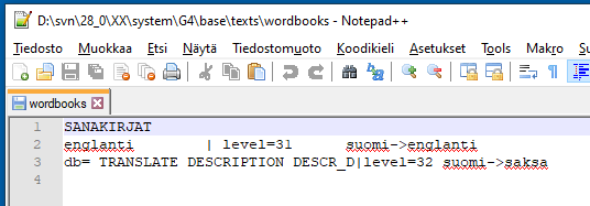Esimerkkinä nykyisen wordbooks-tiedoston sisältö: