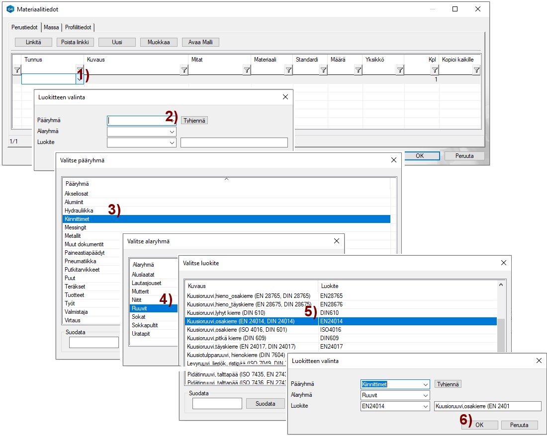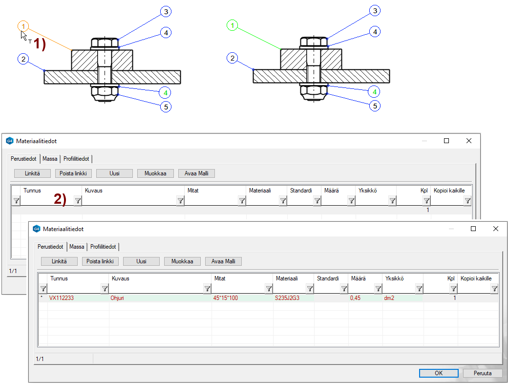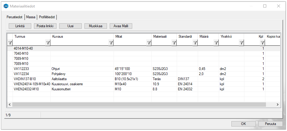 Ohjelma avaa Materiaalitiedot-dialogin. Kuva 2).