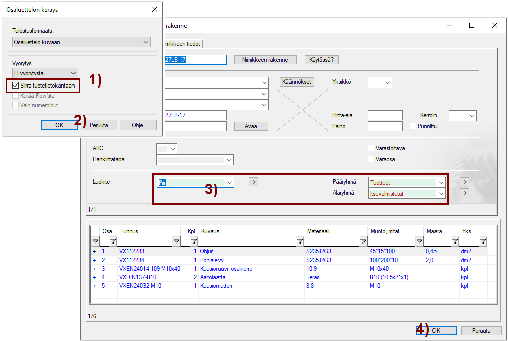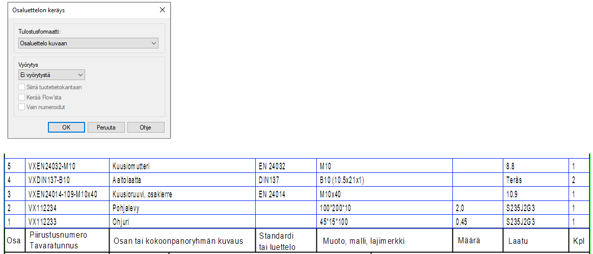 Lisää osanumerot piirustukseen