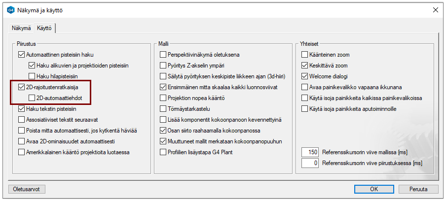 Emme suosittele 2D-automaattiehtojen käyttöä itsenäisissä 2D-piirustuksissa normaalissa suunnittelussa, sillä se lisää ehtoja viivojen välille. Tästä voi seurata: