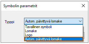 Ohjelma avaa dialogin Symbolin parametrit.