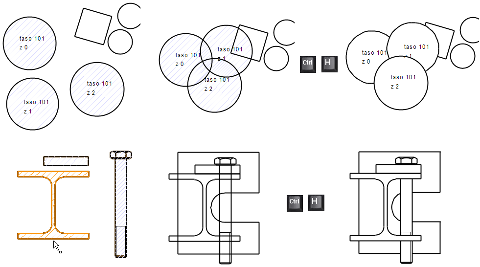 Huomaa, että piirustuslomake on myös ryhmä, joten toimintoa ei kannata käyttää, jos piirustuksessa on piirustuslomake.