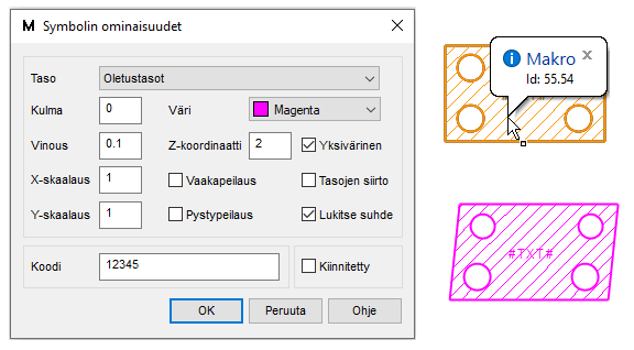 Makrot, eli 2D-komponentit ja kuvakohtaiset symbolit.