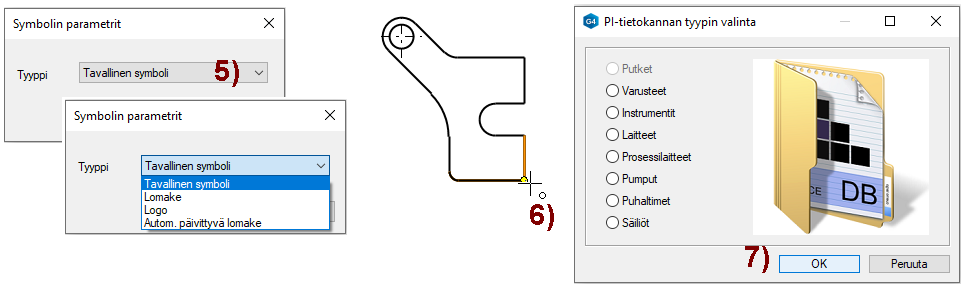 Jos käytössä on PI-kaavionpiirto-optio, niin kuvan 7) mukainen dialoki ilmestyy.