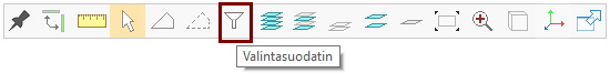 Jos haluat, ettei Vertex reagoi (toistaiseksi) ryhmiin lainkaan, niin työkalunauhan Valintasuodatin avaa listan eri tyyppisistä elementeistä.