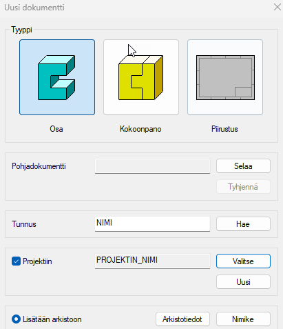 Valitse olemassa oleva projekti tai tee uusi projekti.