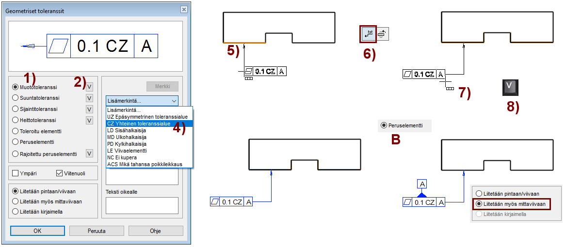 Toiminto: Merkinnät > Geom.toleranssi. Kuva B.